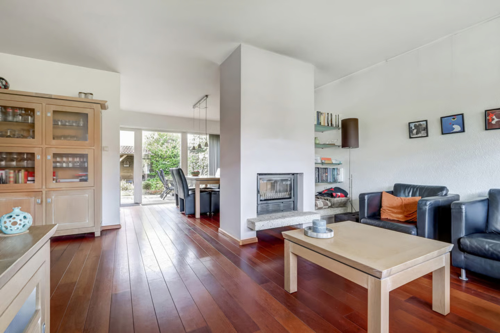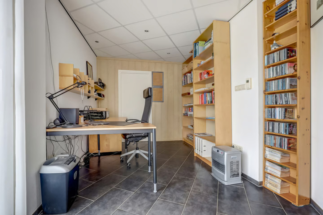 De woning heeft een werk/studeerkamer (met douche en sauna!) op de begane grond, een ruime woonkamer en 5 slaapkamers op de verdieping.